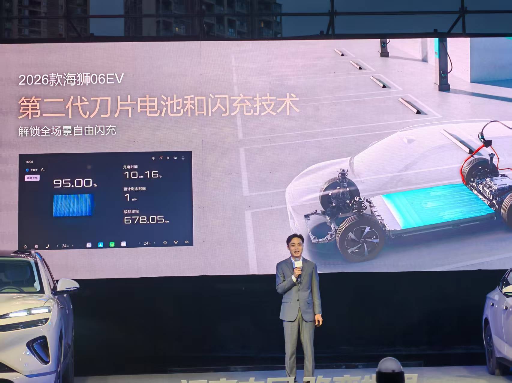 得益于第二代刀片电池与全新闪充技术的赋能,2026款海狮06EV实现了真正的全场景自由闪充,常温状态下,电池电量从10%充至97%仅需9分钟,即便在零下30度的哈尔滨,从20%充至97%也仅用时不到11分钟。与此同时,新车全系最高续航里程提升至710km,让用户告别里程与补能焦虑,尽享说走就走的自由与从容。