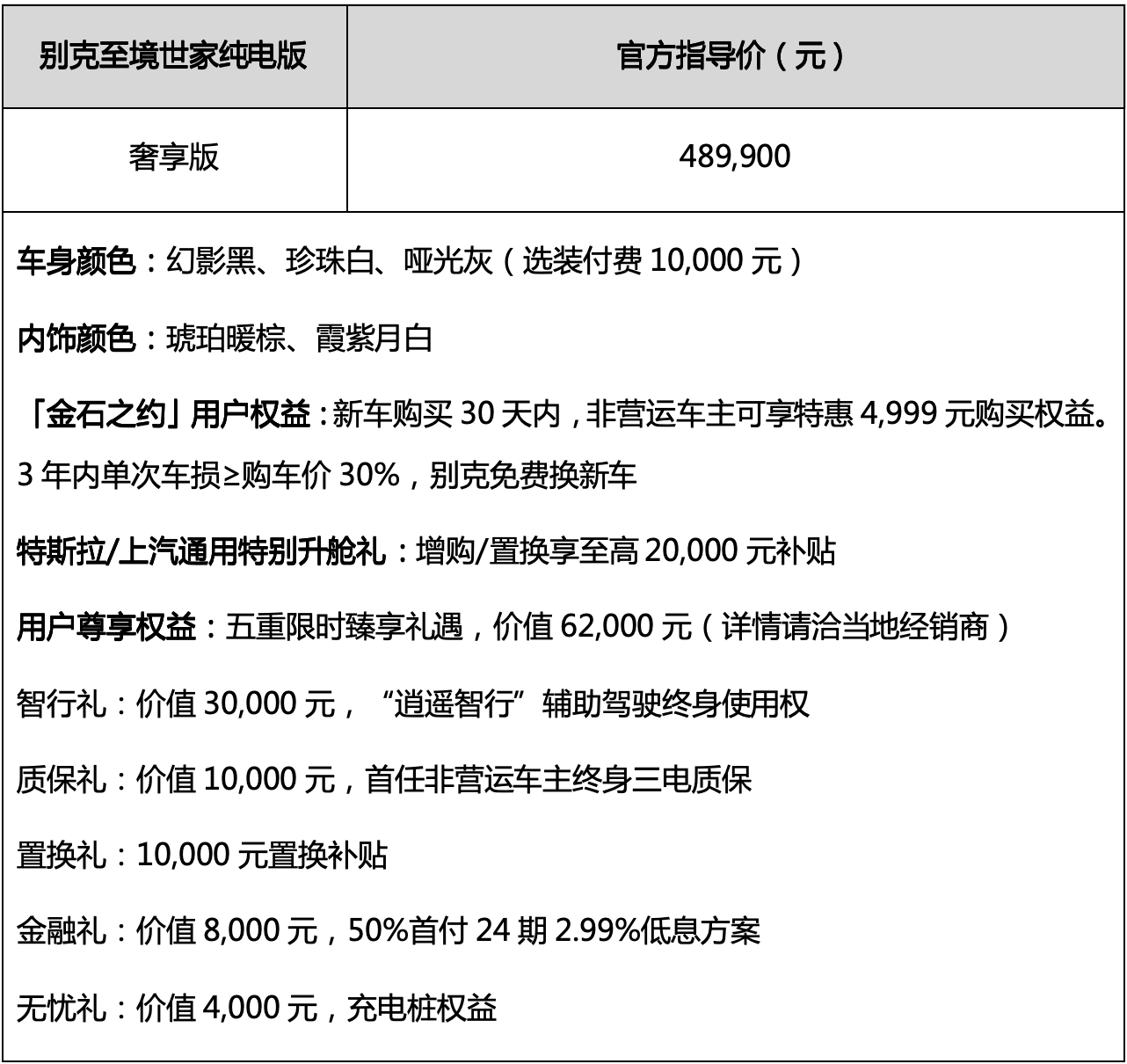 至境世家纯电版延续MPV行业首创的「金石之约」用户权益。购买别克MPV双旗舰的用户,新车购买30天内,非营运车主可享特惠4,999元购买权益。3年内单次车损≥购车价30%,别克免费换新车。作为行业内独有的服务承诺,「金石之约」既是别克对自身产品品质的绝对自信,更是给用户最踏实的兜底,让用户用车无忧、驰骋安心。