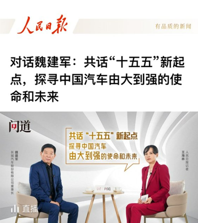 这份国家权威媒体——从去年7月头版报道长城汽车35周年成就,再到12月评论版署名文章谈“文化引擎”,如今两会后又有深度对话。
