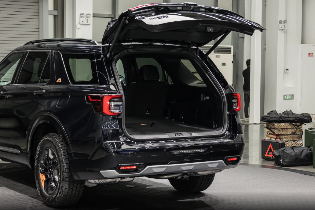 后备厢这块,探险者表现也特别实在。常规状态下就有515L(1505L),三排都坐人的时候,放几个登机箱、背包、购物袋完全没问题,日常家用、通勤足够用。真要自驾出游、搬大件东西,把后排座椅整体放倒,空间直接拉满,能扩展到2487L,差不多就是个小货车的水平。帐篷、行李箱、露营车、婴儿车、渔具这些自驾装备随便塞,就算拉点大件家具、家电也完全hold得住,全家长途自驾、户外露营都特别省心。