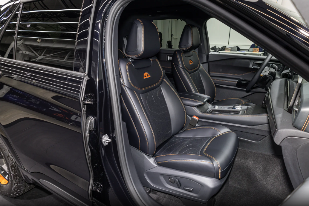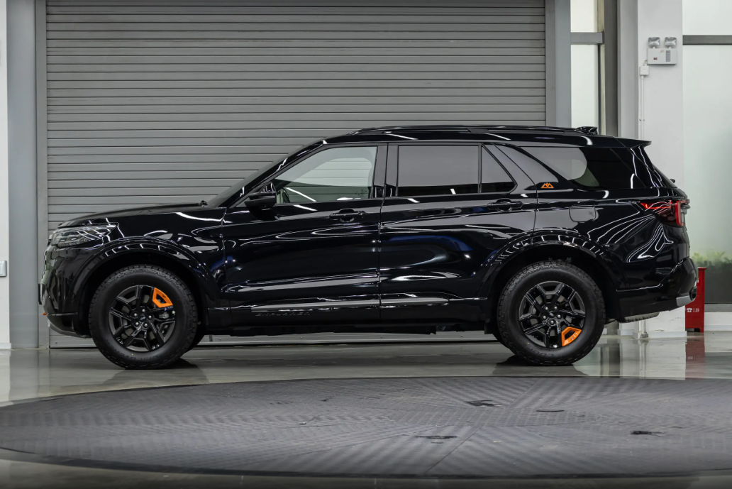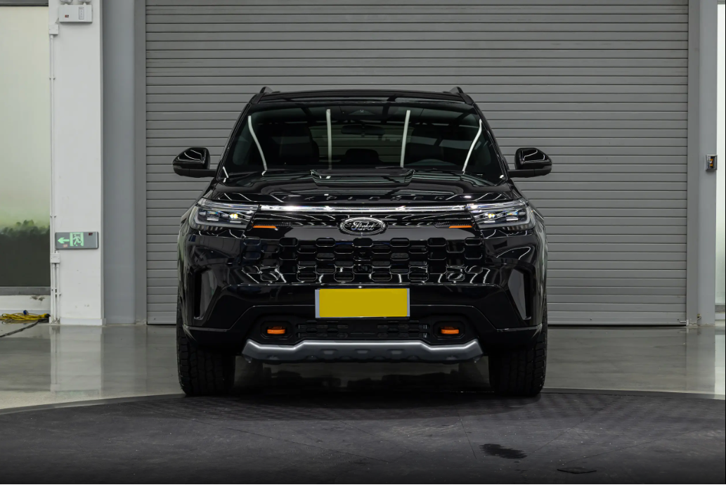 作为常年关注SUV、爱自驾的试驾者,试驾福特探险者后,它给我的第一印象就是硬朗又精致,设计简约不浮夸,气场、实用与辨识度兼备。车头是美式硬派+都市豪华风格:黑色哑光蜂窝格栅配橙色饰条,野性又精致。C形灯带+贯穿式迎宾灯+蓝色门槛条光效,科技感与辨识度拉满。引擎盖线条力量感十足,前包围、双拖车钩强化硬派属性。