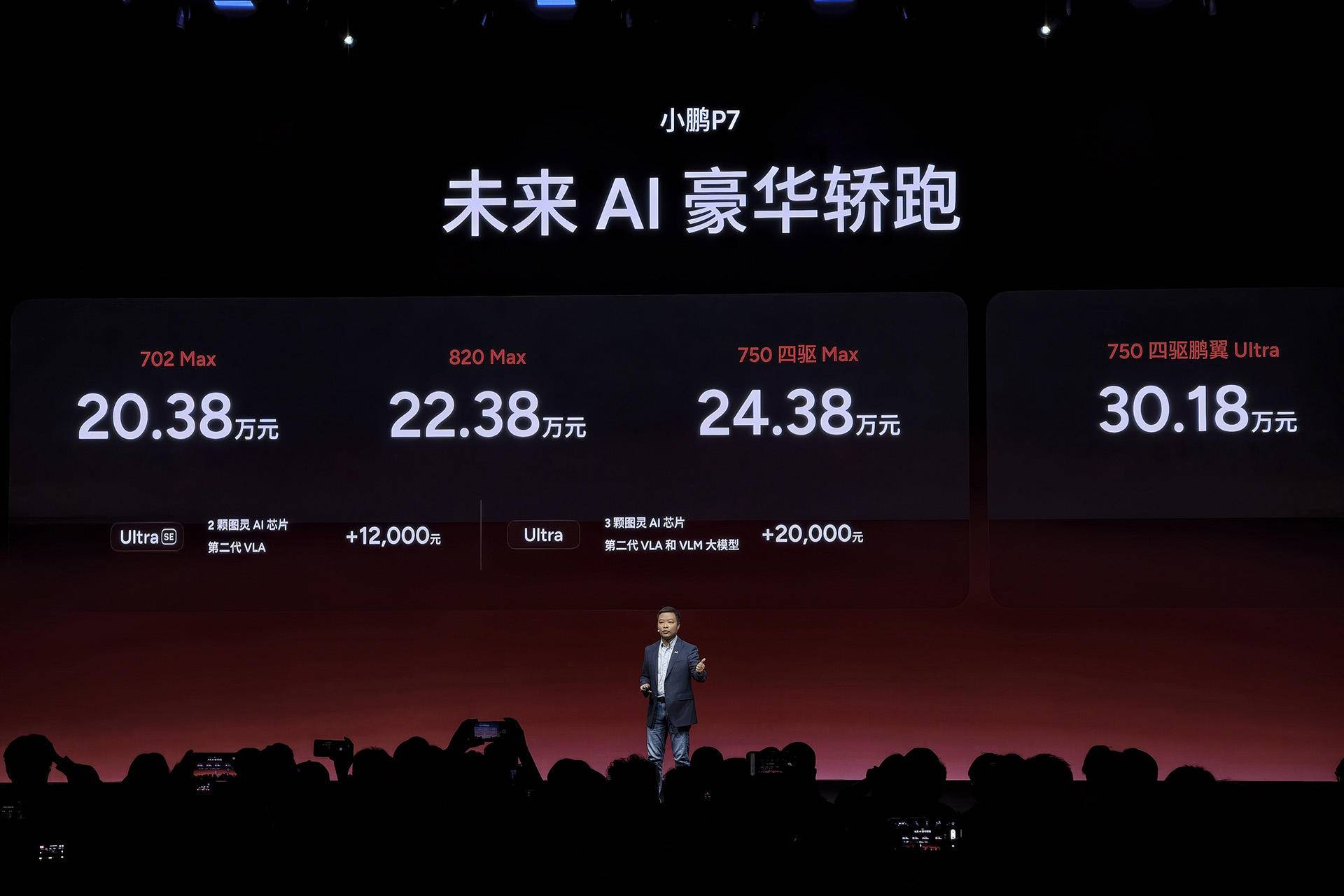 小鹏P7此次的车型与价格策略呈现出明显的针对性。在维持20.38万元起售价的同时,新车系提供了从702 Max、820 Max、750四驱Max到顶配750四驱鹏翼Ultra版的梯度选择。更为关键的是,小鹏为消费者提供了明确的“智驾升级”选装路径:购买Max版的用户,可通过加价1.2万或2万元,直接选装到硬件更强的Ultra SE或Ultra版型。