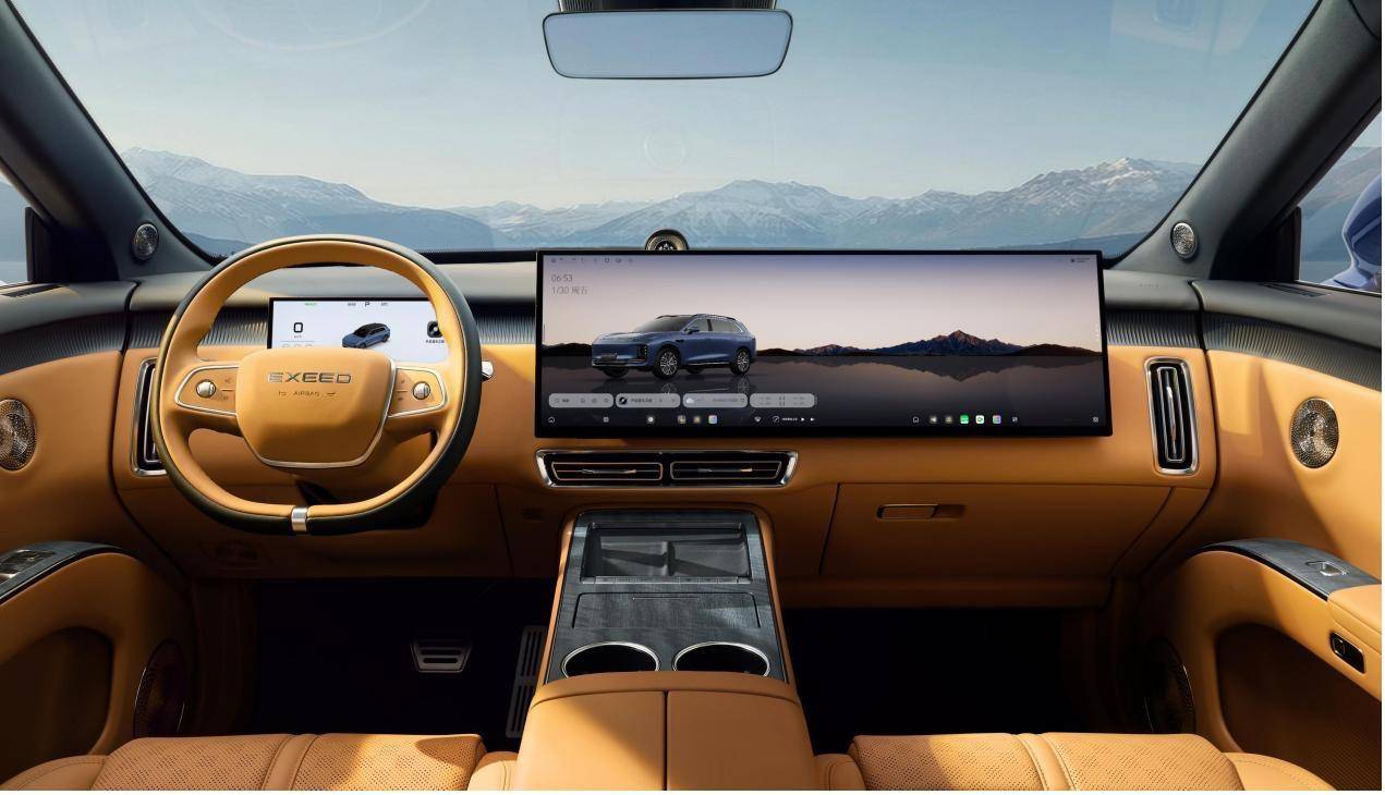 如果说EMB是EX7的“硬实力”,那么AI灵犀智舱2.0就是它的“软灵魂”。坐进车内,5nm高通骁龙8295P芯片为每一次交互注入毫秒级响应的丝滑体验。行业首发的液态玻璃光感交互UI,让光影在指尖流淌,每一次滑动都如行云流水。但真正的突破在于AI智能体大模型的深度赋能——它让座舱真正拥有了思考能力。