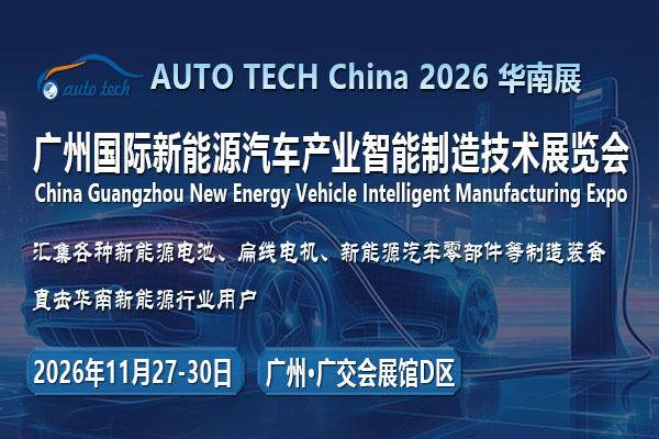 在全球新能源汽车产业格局深度调整的当下,AUTO TECH China 2026 第六届广州国际新能源汽车产业智能制造技术展览会的举办,既是对华南产业优势的集中呈现,也是对行业发展趋势的精准把握。这场兼具专业性与前瞻性的行业盛会,将汇聚全球智慧与资源,为企业搭建起协同创新的桥梁,为产业发展开辟新的空间。2026年11月,广州将再次成为新能源汽车行业的焦点,见证技术与市场的深度融合,共绘产业高质量发展的新蓝图。更多精彩等待您现场解锁!详情请点击:http://www.evmade-expo.com参展/参观联系人:汪女士177 2452 1438 wangcuiping@jswatsonexpo.com