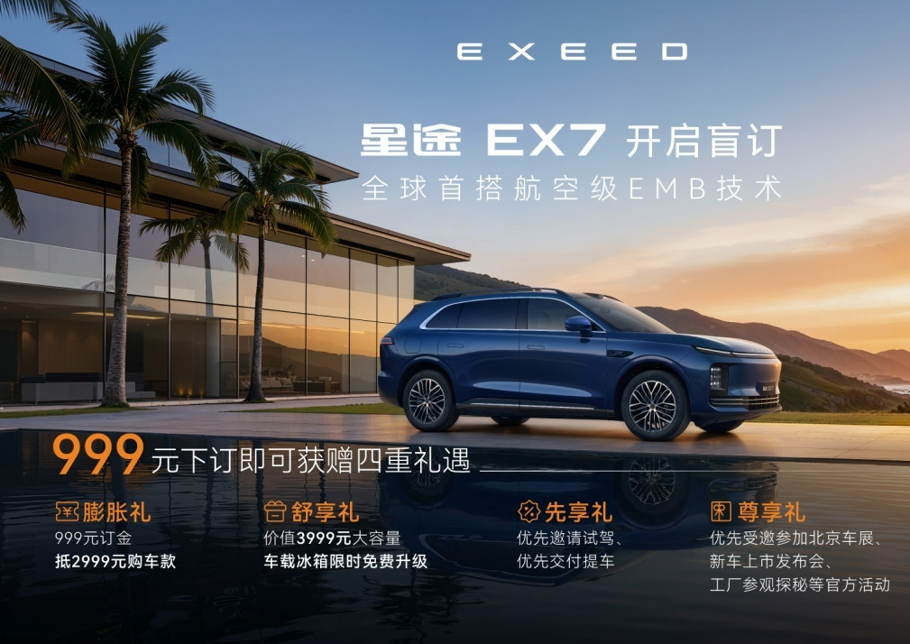 星途EX7开启盲订,全球首搭航空级EMB技术