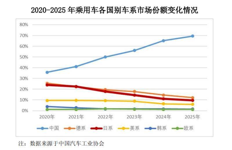 实际上,这也是日系车在华“结构性退潮”的缩影。将视角放大至整个日系乘用车市场,中汽协数据显示,日系三强(丰田、本田、日产)在华合计市场份额已从巅峰时期的24.1%跌至2025年的9.7%。
