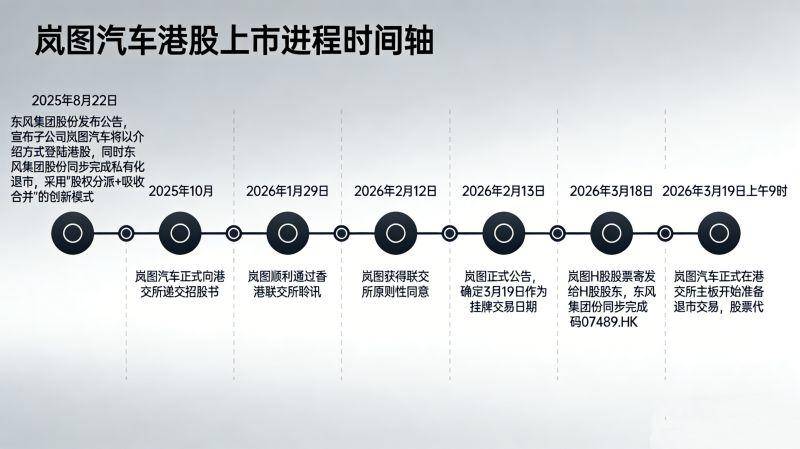 同年10月,岚图递交招股书,披露经营数据与发展规划;2026年1月29日通过港交所聆讯,2月12日获原则性同意,完成全部前置审批,2月13日官宣3月19日挂牌。