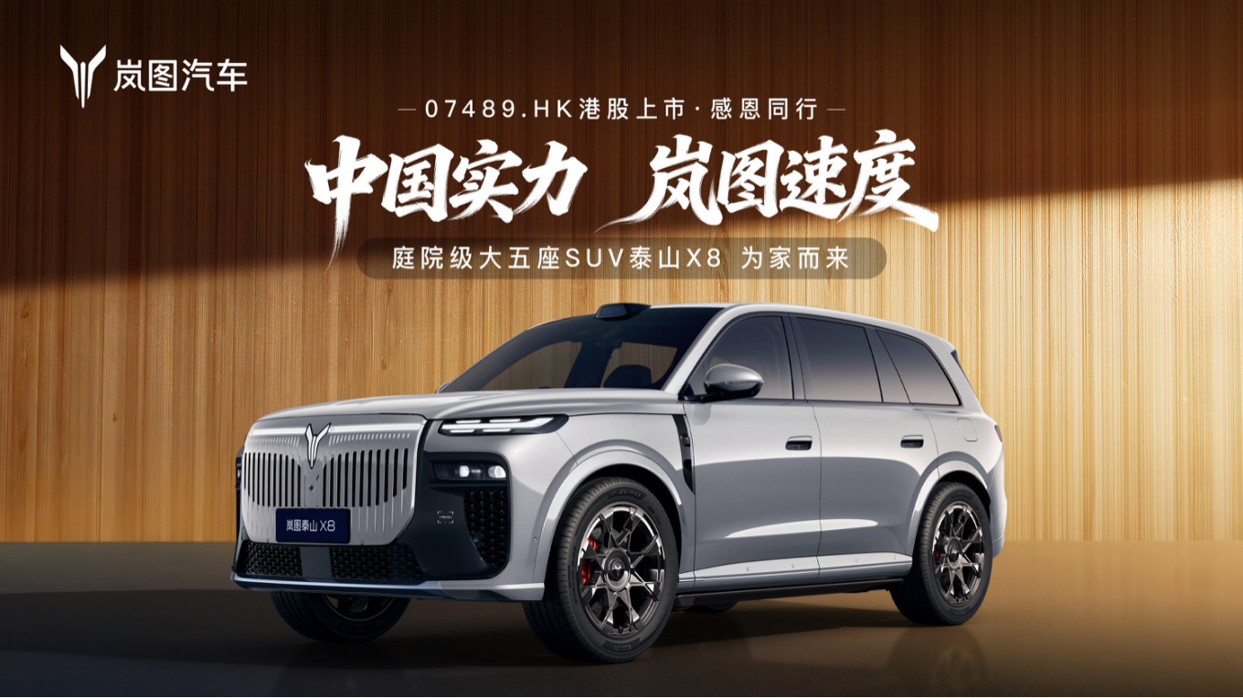 此次港股上市,是岚图迈入技术与资本双轮驱动新阶段的里程碑,而泰山X8作为首发战略车型,凭借空间、设计、智能、动力四大越级实力,不仅树立了大五座SUV新标杆,更成为驱动岚图品牌全球化、市值增长的核心引擎。未来,岚图将依托央企底蕴与资本加持,以泰山X8为先锋,深耕高端新能源赛道,用中国智造实力征战全球市场,续写央企高端新能源品牌新篇章。