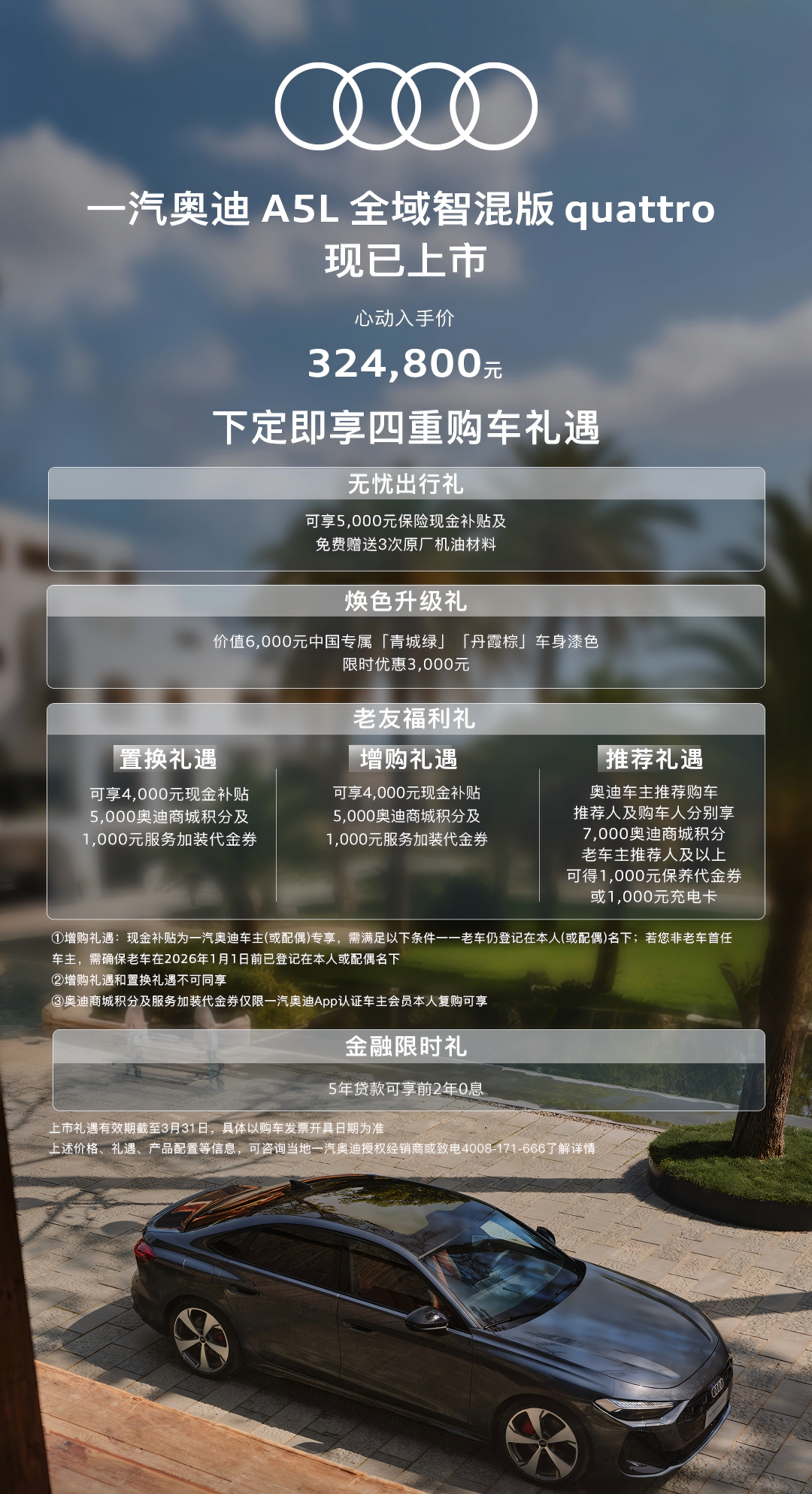 32.48万就能拿下奥迪四驱混动豪华B级车?2026年3月19日,一汽奥迪直接给国内豪华车市场扔出了一枚“王炸”——一汽奥迪A5L全域智混版quattro正式上市。作为奥迪全新PPC豪华燃油智能平台的首款量产车型,这台新车不仅带着五维全维升级的硬核产品力而来,更以一套颠覆传统的HDI双电机全域智混系统,打破了燃油车“性能、节能、平顺”不可兼得的魔咒,给所有还在纠结“选油车还是电车”的消费者,交出了一份近乎完美的答案。