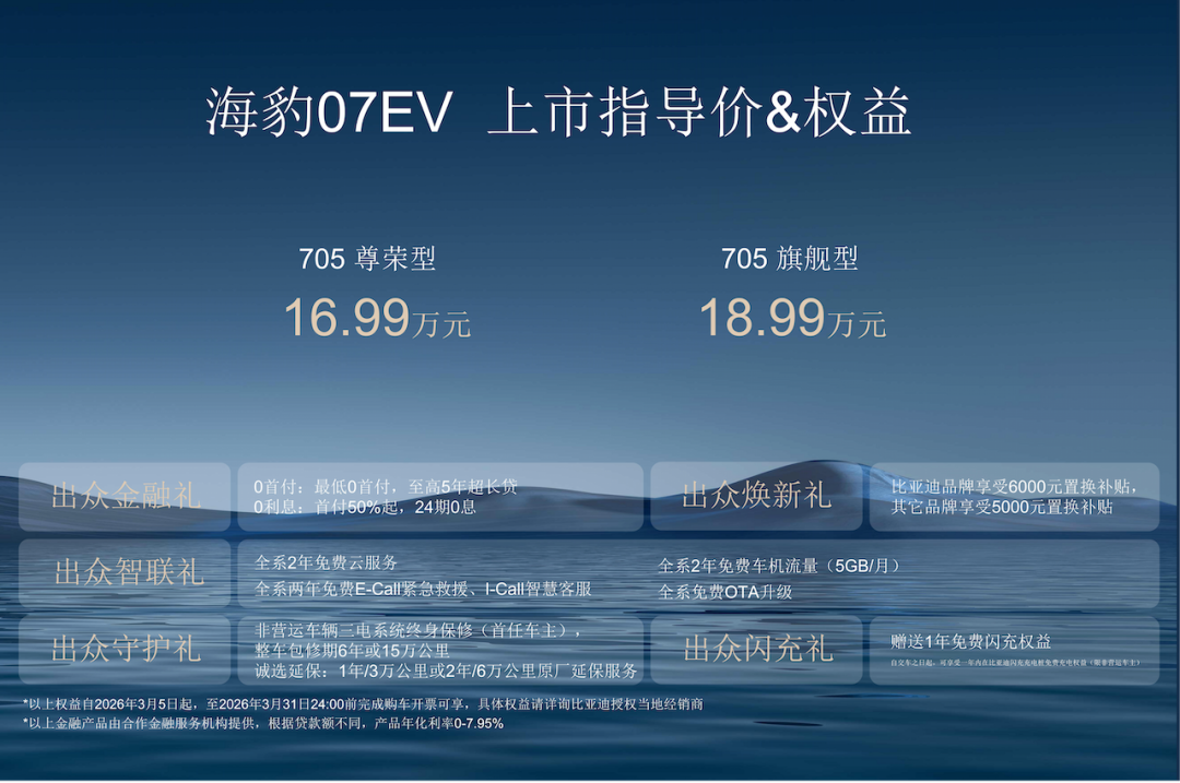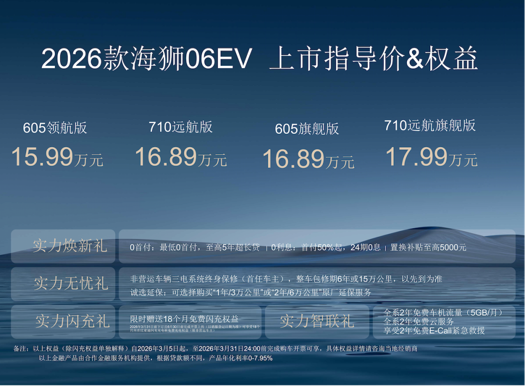 3月18日,比亚迪海洋网在重庆办了一场上市活动,2026款海狮06EV和海豹07EV同步亮相。比亚迪区域负责人公布价格,海狮06EV售15.99万至17.99万元,海豹07EV售16.99万至18.99万元。