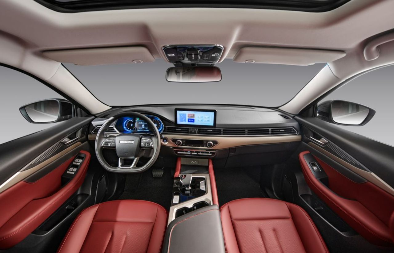 内饰黑红配色很经典,12.3 英寸仪表 + 10.25 英寸中控屏的组合,显示清晰操作流畅,镀铬装饰和钢琴烤漆面板提升了质感,几万块的车能有这内饰表现,真的没得挑。、