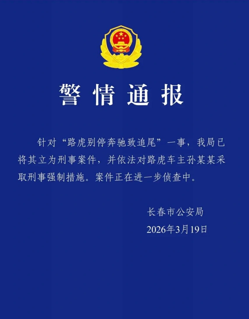 日前,长春市公安局发布警情通报,说明将该案件立为刑事案件。