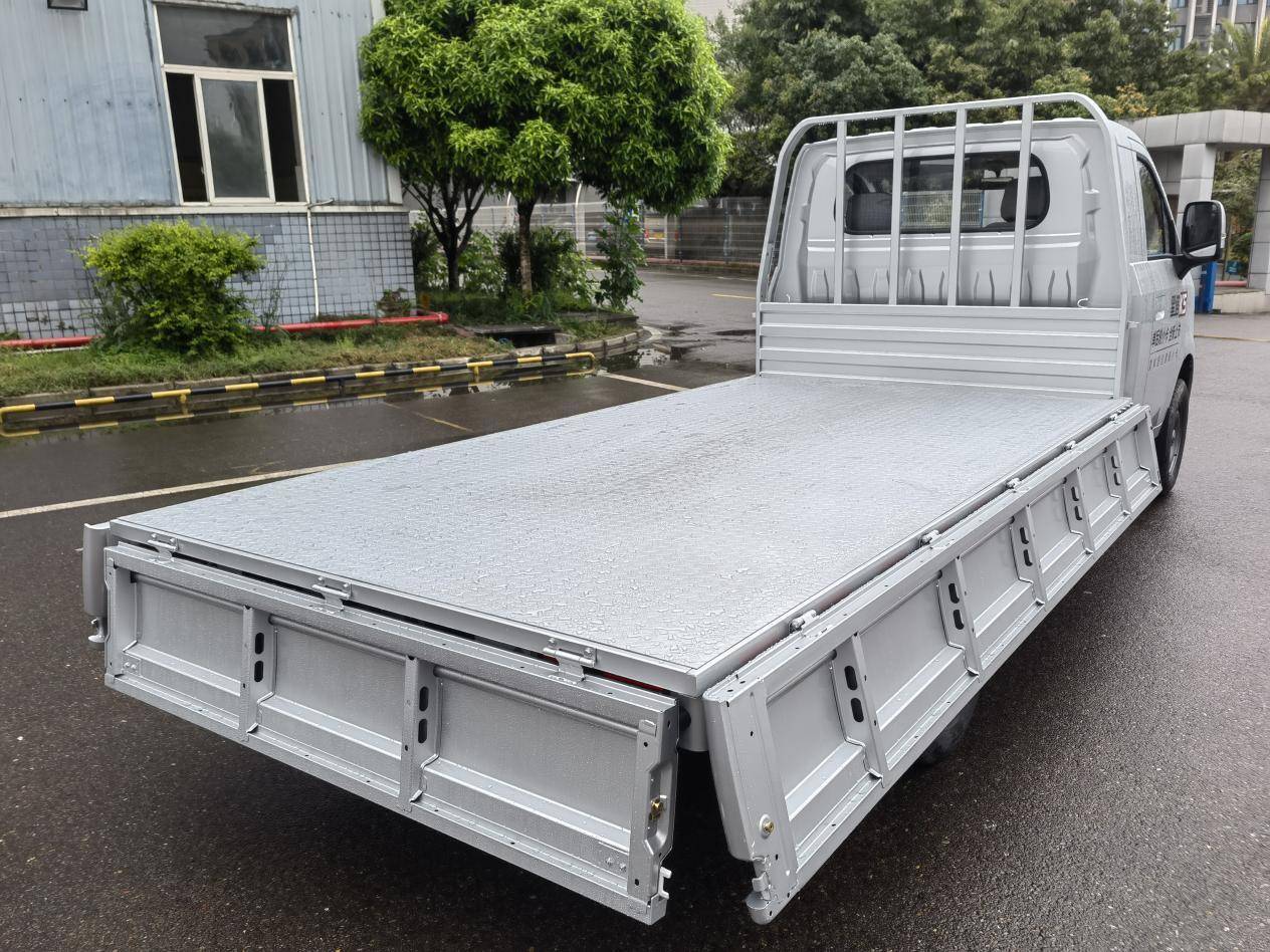底盘与承载方面,新车采用前双横臂独立悬架搭配横向稳定杆,可提升车辆侧向支撑与抗侧倾能力,载货过弯更稳健;悬架配备加大弹簧减震,满载通过坑洼路面时滤震效果更优,提升驾乘平顺性。车身搭载 140mm 直通大梁,采用 QSTE600TM 高强锰钢材质,搭配 190 高承载后桥与整体式上下壳车桥,抗冲击性与承载能力更可靠;标配 195/70R15LT 货车专用载重轮胎,可满足日常重载运输需求。