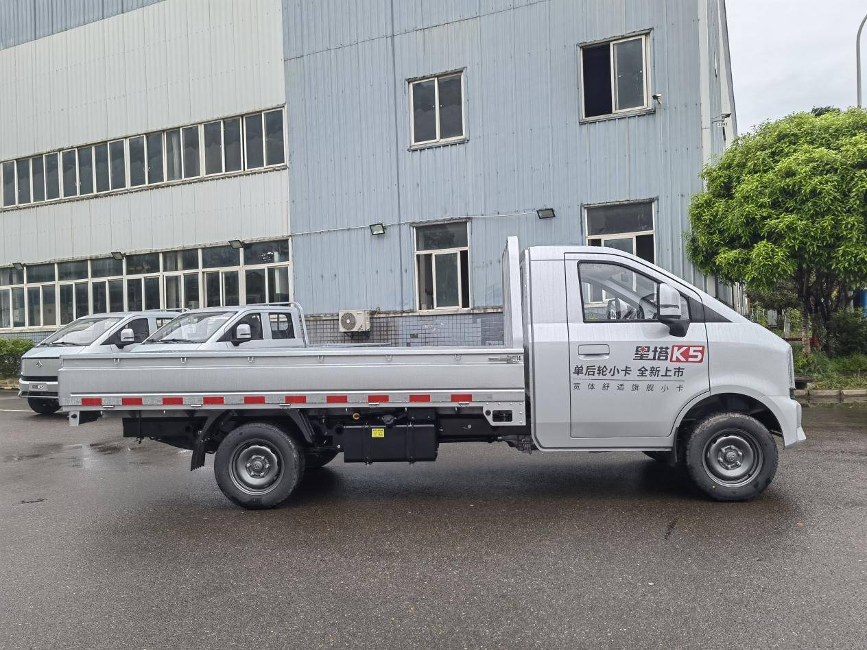 装载与通行设计贴合城配场景,星塔 K5 单后轮提供单排、双排两种车身形式,单排车型货箱长度 3.3 米、宽度 1.75 米,双排车型提供 2.7 米、2.55 米两种货箱尺寸,货箱为独立结构,标配花纹底板防滑耐用,还配备多组固定挂钩,货物固定更便捷。货箱支持三面开启,820mm 超低货台设计让装卸货更省力;整车高度控制在 2 米以内,可轻松驶入小区、地下车库等限高路段,适配城市复杂通行场景。