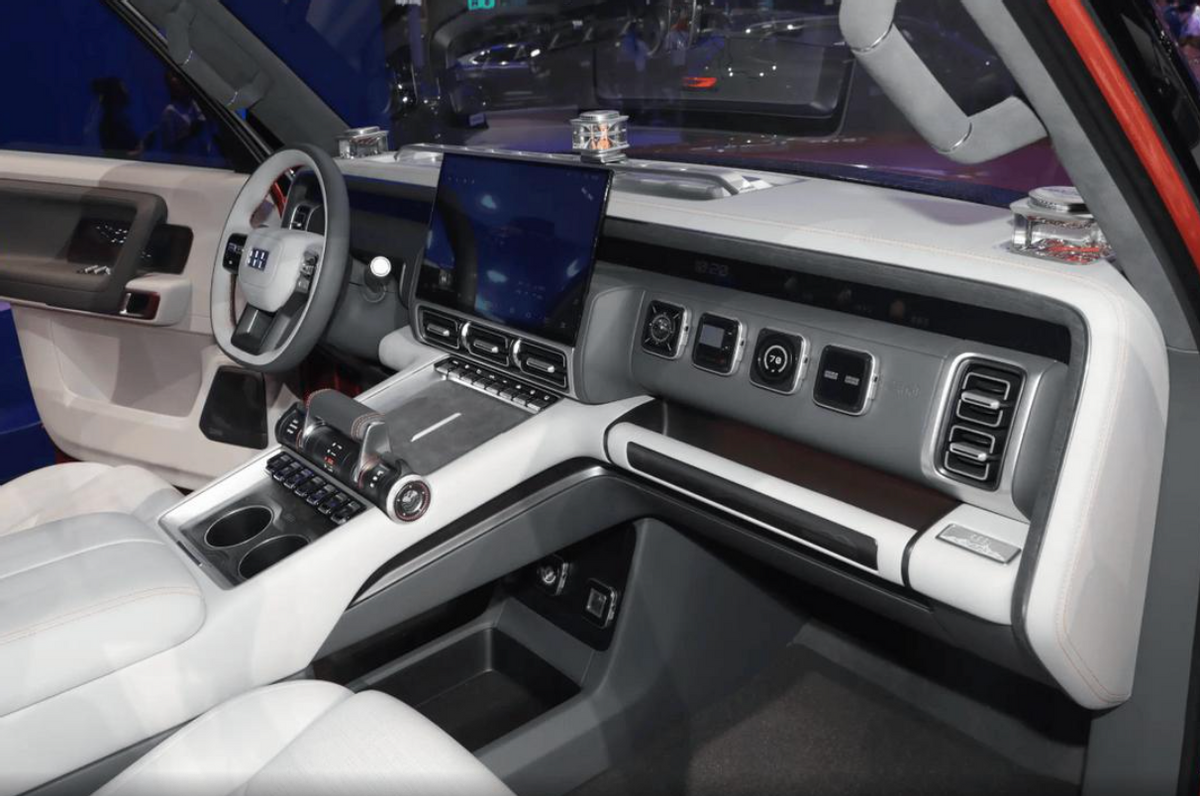 概念车的内部设计也很有意思,副驾前方一四块屏幕,可显示方向、海拔等信息,方便越野时副驾领航。