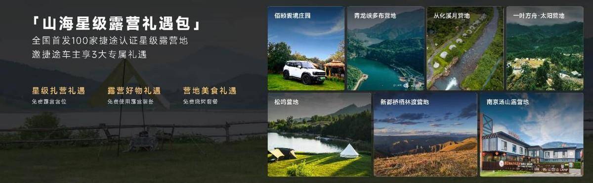 首发100家星级露营地,为车主提供专属礼遇、推出露营生态件权益,对于热爱户外露营的车主来说每年至高可省下万元露营费用。这意味着,捷途不仅在卖车,还在为用户搭建一个完整的出行生态。