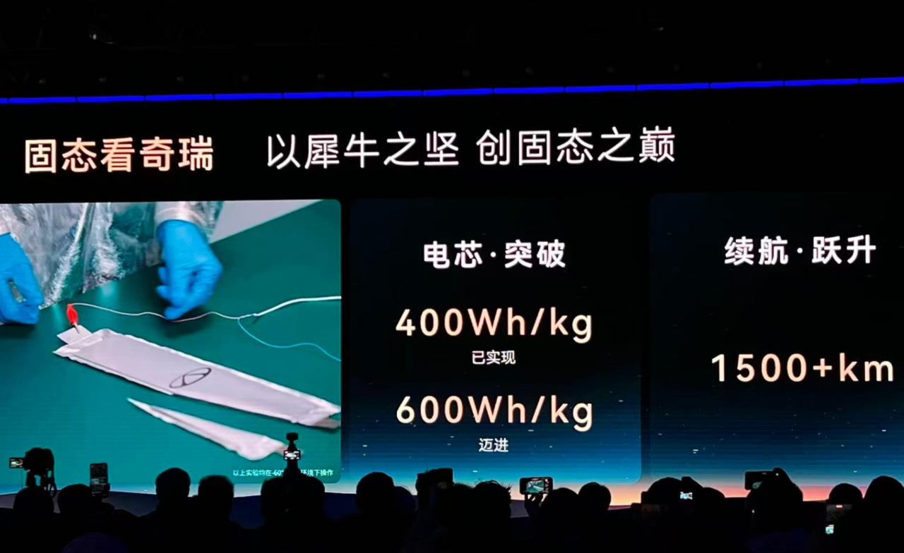 奇瑞在这次电池之夜上,没有回避难度,但给出了清晰的进度表。他们专为固态电池开辟了犀牛S系列,目前实验室已实现电芯能量密度400Wh/kg的突破,正在向600Wh/kg的目标攻坚,对应续航里程可超过1500km。为了攻克难关,奇瑞组建了超过1200人的专项研发团队,其中硕博比例高达90%,累计投入已超百亿元,并且宣布未来投入不设上限。