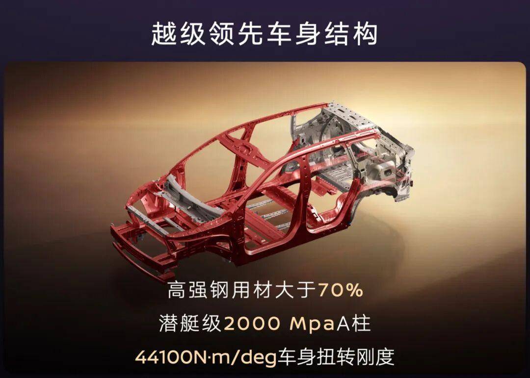 车身结构上,A柱采用2000兆帕潜艇级钢材,全车高强钢用量超70%;
