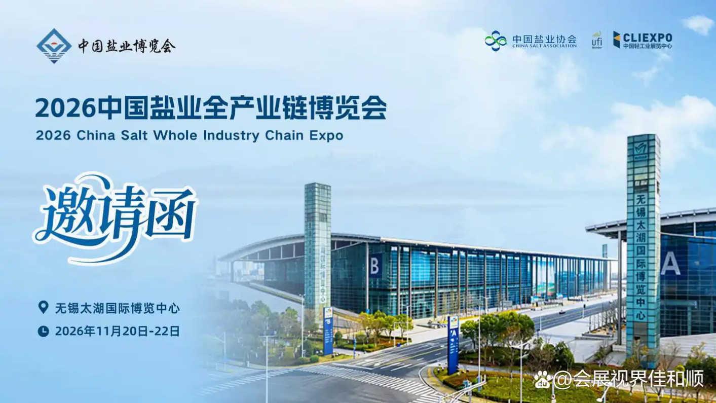 潮涌千帆竞,盐途共致远。2026中国盐业全产业链博览会是展示企业实力的舞台,是链接产业资源的桥梁,更是共谋盐业绿色创新发展的重要平台。诚邀您拨冗莅临,与行业同仁携手并肩,共同推动中国盐业高质量发展迈上新台阶!
