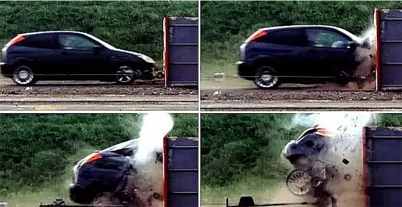 现实中没有哪家碰撞测试机构会以超过100km/h的速度去进行碰撞测试,不论是对燃油车还是新能源汽车;测试时速实际都是偏低的;当然也有一些不按标准流程进行的碰撞测试有高速测试,那就不妨来看一辆老旧车型以高速碰撞测试后的结果吧。