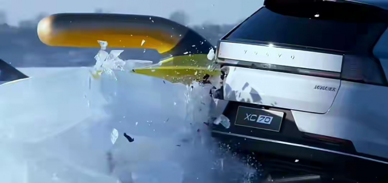 之所以称之为极限测试,是因为无论从撞击体重量、碰撞方式还是环境条件来看,这一测试都远远超过现有法规标准。6.5吨的实心冰壶重量已经超过XC70整车重量的三倍,而且属于完全刚性的撞击体,没有任何吸能结构或缓冲区域。当这种重量级撞击体以60km/h以上速度撞向车辆时,其动能强度甚至可以等效于一辆2.5吨级SUV以接近100km/h速度追尾。对于车身结构而言,这种冲击强度已经远远超过大多数标准测试工况。
