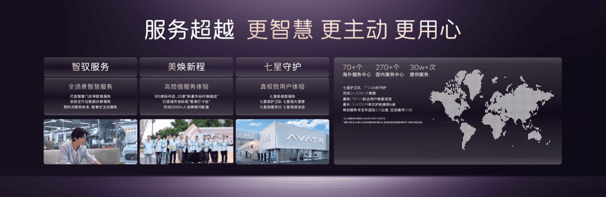 截至目前,阿维塔已在全国布局270家服务中心,累计提供超30万次服务、2.4万次救援,单次护航最远达3600公里。在台风“韦帕”登陆深圳时,服务人员主动联系并帮助身在异地的车主挪车避险;客服人员通过SOS及时唤醒疲劳驾驶用户,将隐患消弭于无形。未来,阿维塔将持续完善智美七星服务体系,涵盖救援、保养、应急响应等全方位保障,让每一次出行都充满从容与安心。