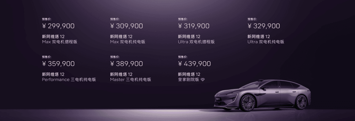 即日起,新车在全国阿维塔门店及官方线上平台同步开启预售。此外,新阿维塔12将于4月8日正式上市。诚邀塔友们到店品鉴,亲身感受新阿维塔12的超越实力,见证“能超越阿维塔12的,只有阿维塔12”的进化之道。