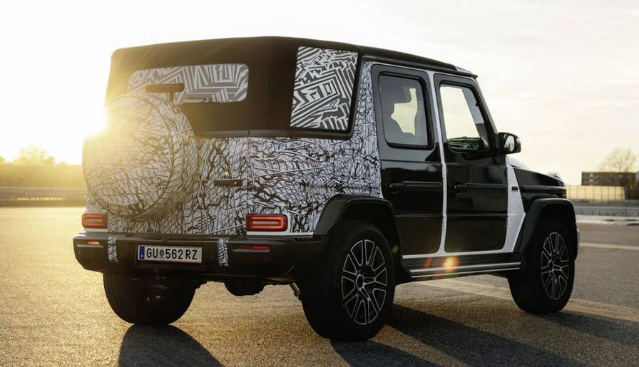 从官方发布的伪装谍照来看,尽管车头细节尚未完全显露,但经典的圆形复古大灯与醒目的三叉星徽标,大概率会出现在新车之上,延续大G标志性的设计语言。车身侧面已接近量产形态,采用四门布局,整体采用纯黑涂装,后车窗配备隐私玻璃,车顶则为可折叠式软顶结构。车尾最具辨识度的外挂式备胎采用隐藏式布局,收纳于专属外壳之中,与常见的外露式设计形成区别。外扩式轮眉进一步强化了整车的硬派越野气场。