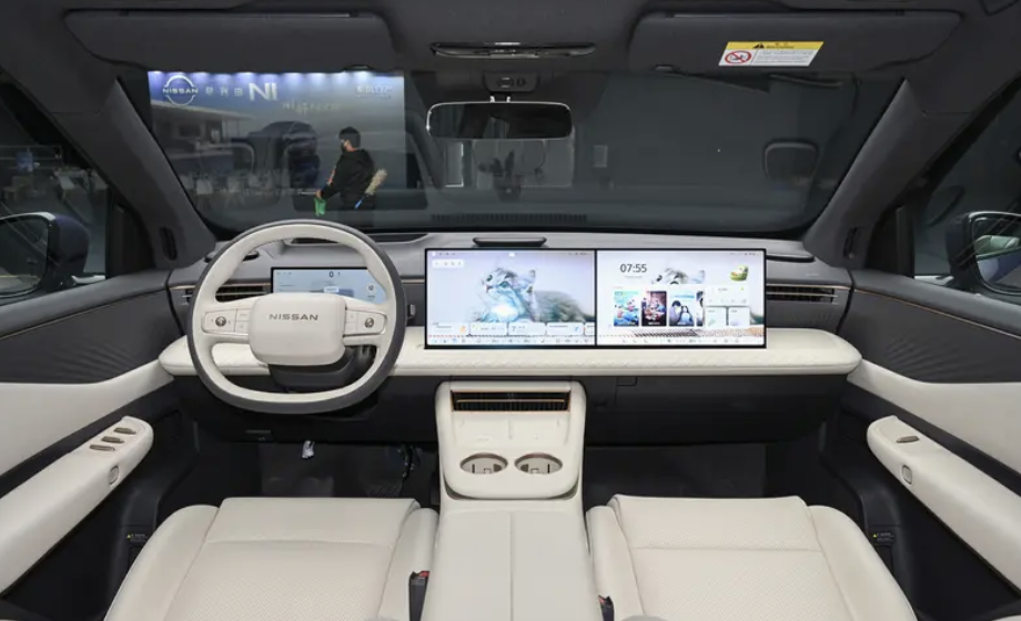 进入车内,新车同样采用简洁的设计语言,T字型的座舱、贯穿式空调出风口以及无过多修饰的车内门饰板,简洁、干净;悬浮式液晶仪表配合大尺寸车机+副驾娱乐屏所组成的双联屏,将车内科技感提升到全新高度;电子怀挡的搭配也让中央副仪表区域储物空间更加丰富。