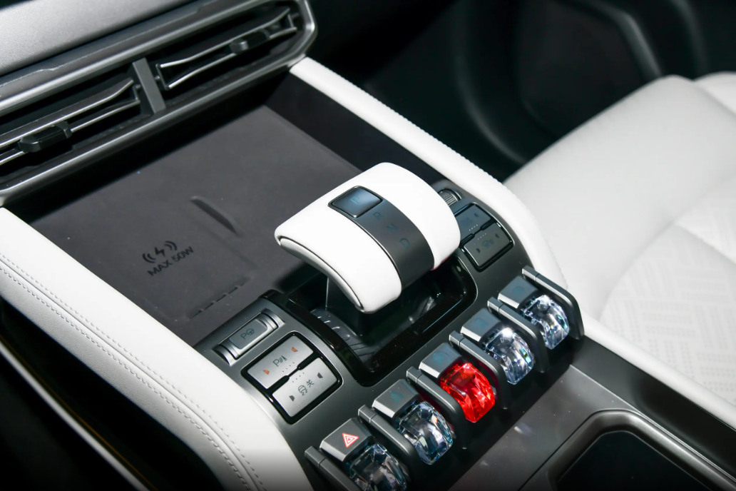 内饰一坐进去就很熟悉,跟豹5是同一家族的风格。配了15.6英寸悬浮中控屏+8.8英寸液晶仪表,显示清晰、看着也高级。方向盘是家族式四辐款,中央扶手那块保留了豹5同款水晶按键和电子挡把,质感直接拉满。扶手箱里还带车载冷暖冰箱,夏天喝冰饮、冬天保温都方便。其他配置也很顶:帝瓦雷音响、车载 KTV 麦克风、手电筒、星环氛围灯全都有,不管是日常代步还是出去玩,氛围感和实用性都拉满了!