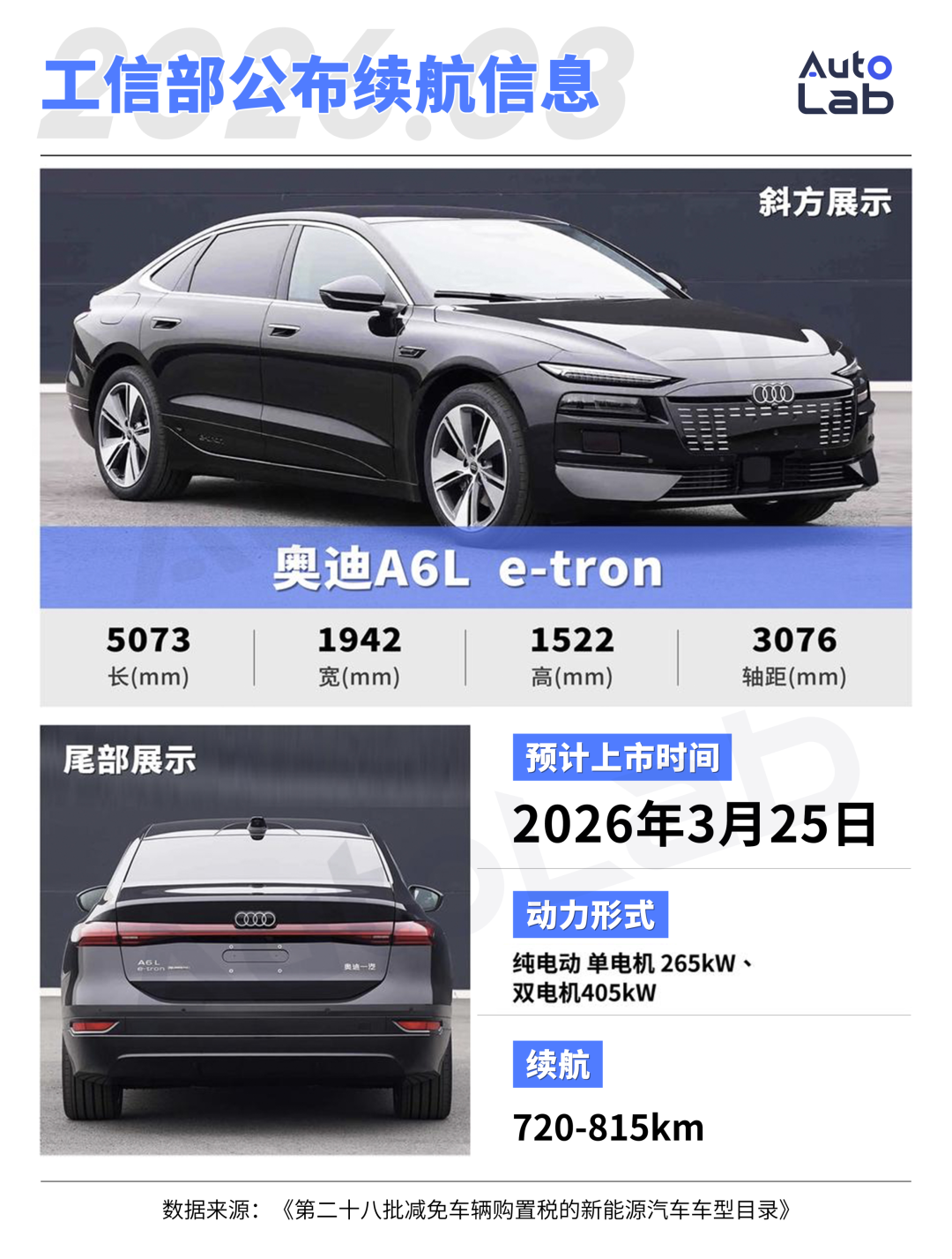 动力方面,在此前申报的106.7度大电池版本基础上,新车又新增了一款95度电池的“小电池”版本,并继续搭载quattro电四驱系统。其中前电机最大功率135kW,后电机最大功率270kW。