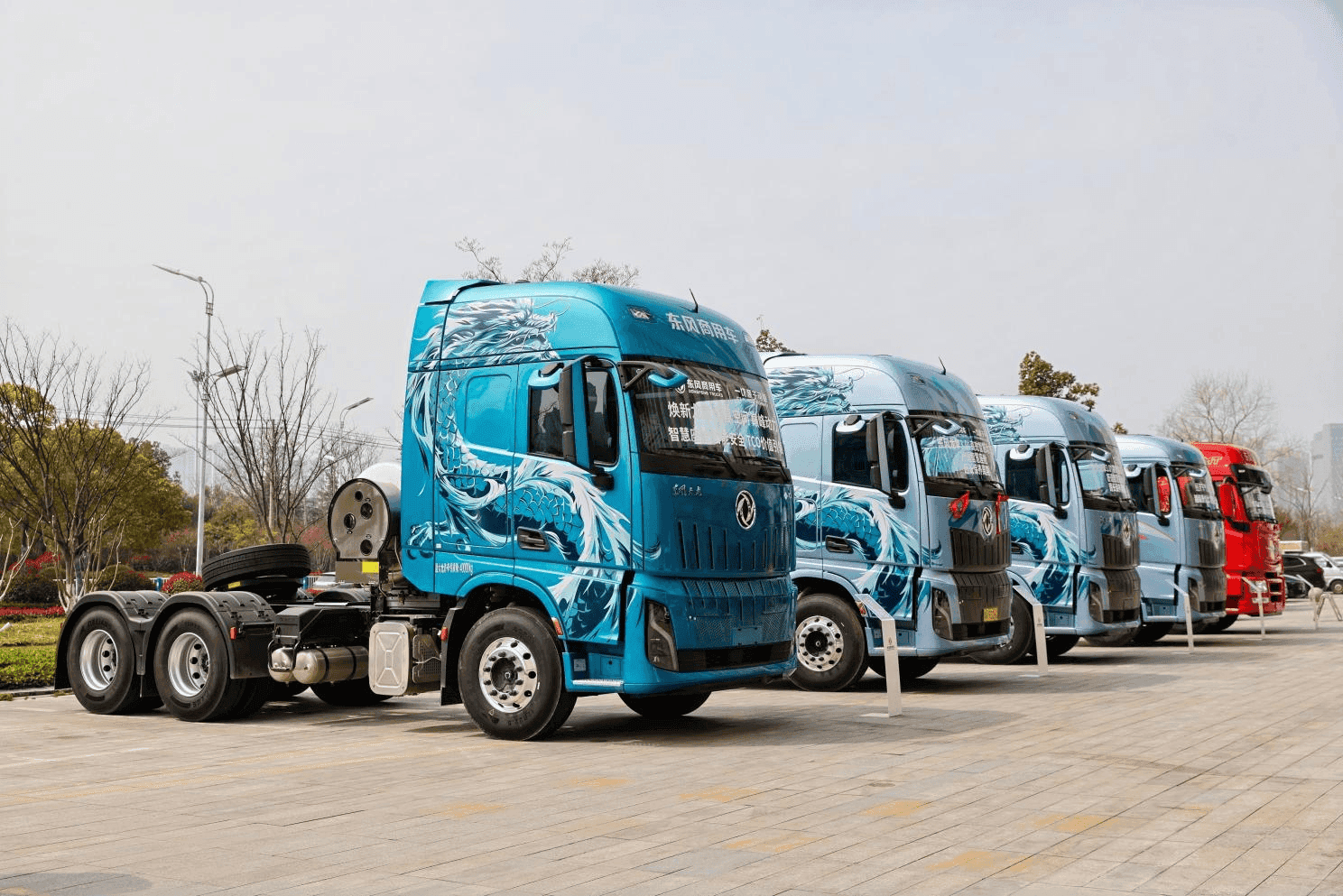 活动外场,5台搭载龙擎 3.0⁺高效智慧动力链的东风天龙新KL车型整齐列队、接受客户检阅;2款龙擎 3.0⁺高效智慧动力链展品吸引着行业媒体们驻足讨论、争相点赞。