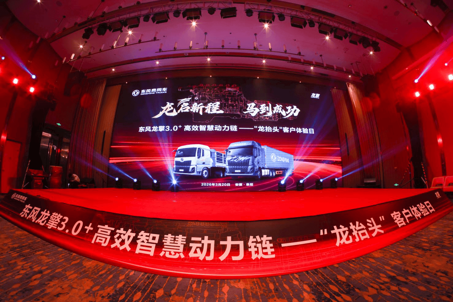 3月20日,农历二月初二“龙抬头”,以“龙启新程 马到成功”为主题的东风龙擎3.0⁺高效智慧动力链客户体验日在安徽阜阳盛大举行。这是继去年龙抬头发布龙擎3.0动力链后,东风商用车再度选择在这一传统吉日,为全新升级的龙擎3.0⁺动力链及搭载该动力链的东风天龙新KL揭开面纱。正如“龙抬头”所象征的生机与腾飞,东风龙擎如巨龙昂首,引领中国商用车动力技术迈向新高度。