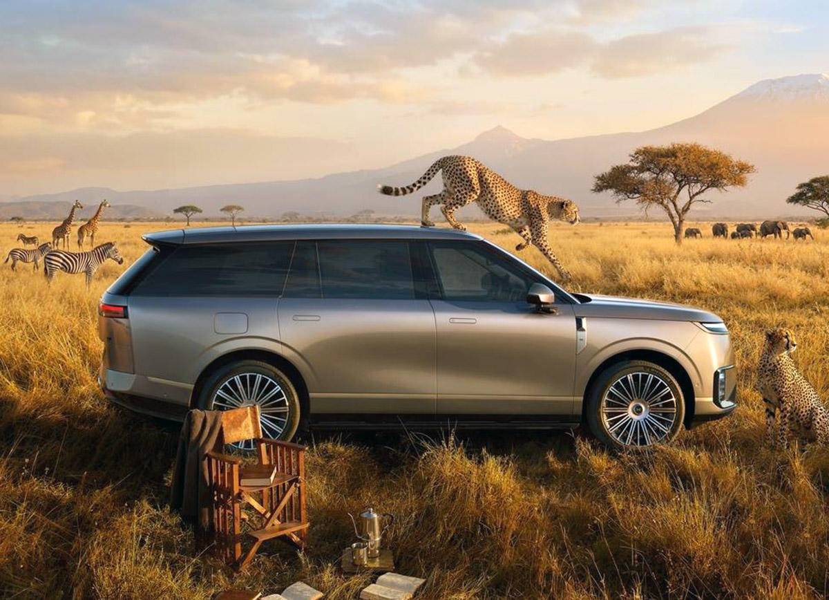 车身侧面部分的整体造型很舒展流畅,设计风格和路虎揽胜基本一致,车顶为悬浮式效果,D柱为隐藏式设计,车门把手使用了隐藏式的结构。车身尺寸方面,新车长宽高分别为5265/1999/1800mm,轴距为3115mm。
