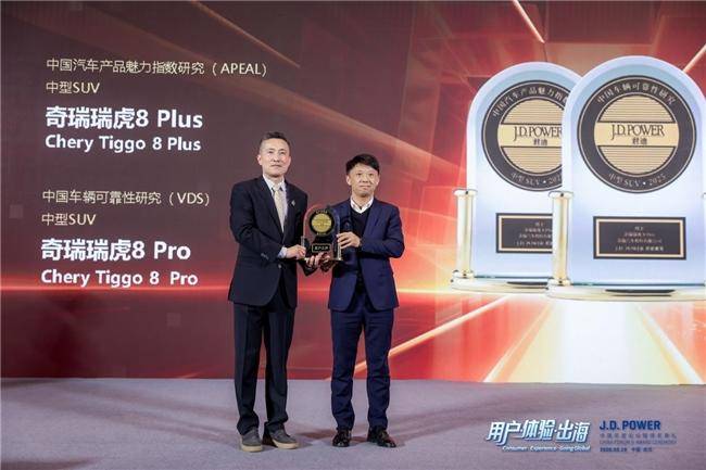 2026年3月19日,在J.D. Power中国年度论坛暨颁奖典礼上,奇瑞集团获品牌维度5项第一、车型维度7项冠军及2项典范,共14项大奖,刷新自主品牌在该评测体系综合表现,创唯一自主品牌“五冠王”纪录。其中,瑞虎8系表现亮眼,瑞虎8 PRO获车辆可靠性研究中型SUV第一,瑞虎8 PLUS获汽车产品魅力指数研究中型SUV第一并蝉联冠军,是获奖重要力量。