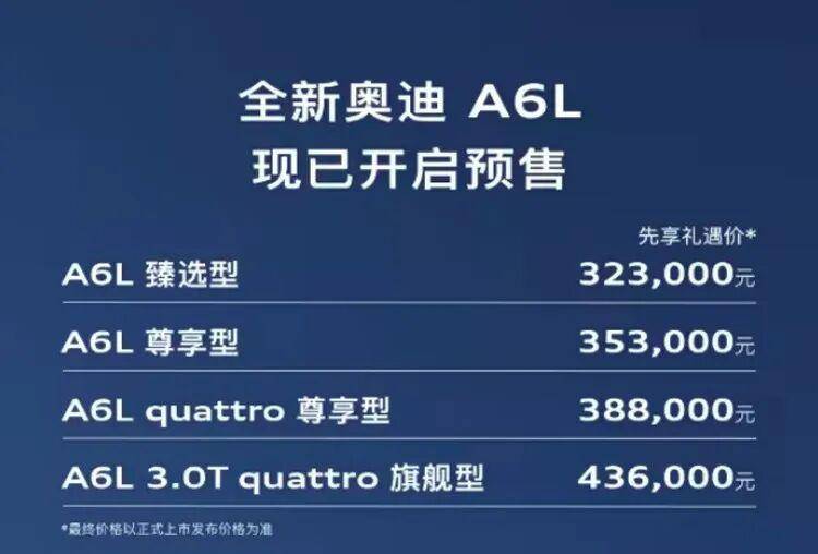 结合预售价来看,全新A6L要比现款便宜近10万,产品力大增+价格大幅下探,说它是史上最强一代A6L一点也不夸张,全新A6L上市后,在当下内圈的车市环境中,会带来怎样的销量走势,我们会持续关注。