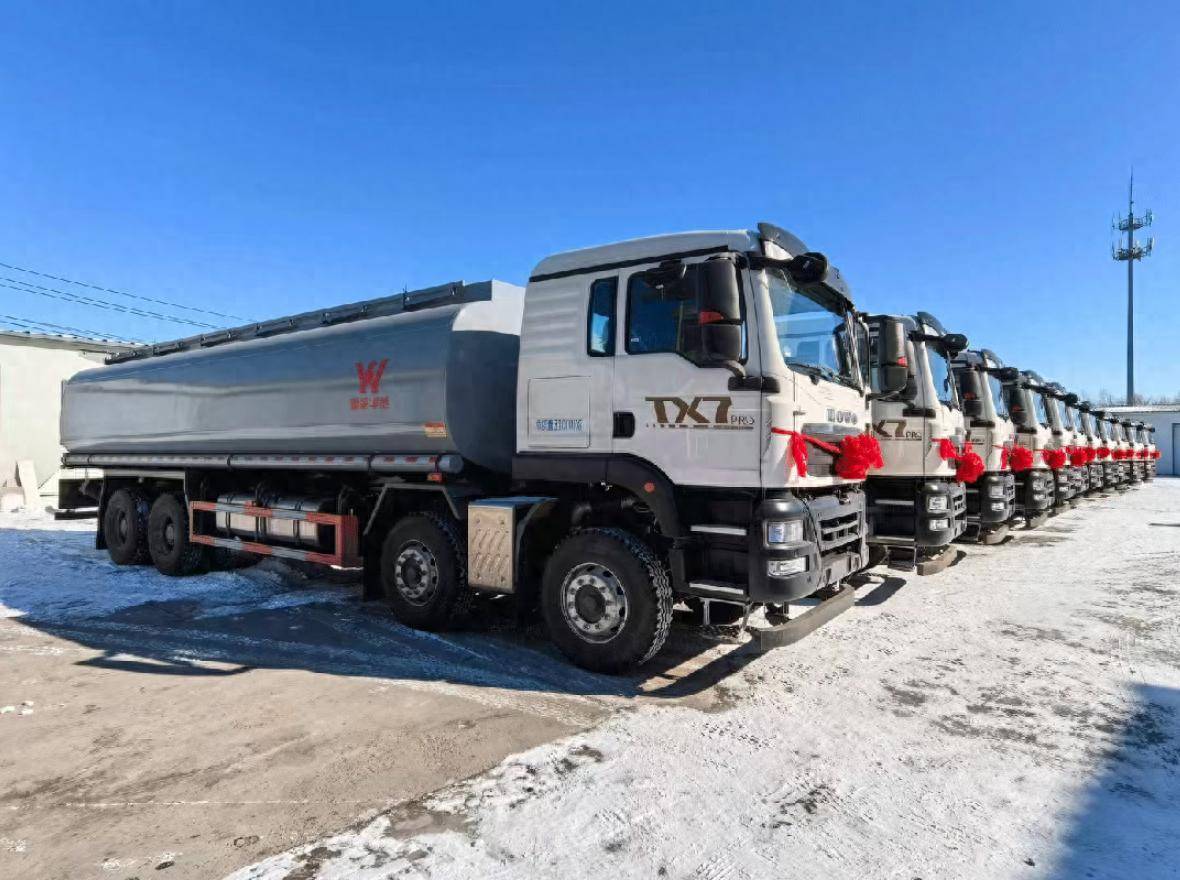 在中国重汽本轮交付版图中,呼伦贝尔的12台油田供液车尤为亮眼。作为整车一体化技术创领者,豪沃重卡针对油田复杂路况与极寒气候,打造高通过性、皮实安全、舒适节油的专属产品。高位全金属保险杠、抬高式水箱等设计有效提升车辆通过性,驾驶室“馈断式”后移技术筑牢安全防线,四点全浮设计兼顾舒适与节油,全方位适配油田作业需求。凭借定制化优势,豪沃油田专用车在“两桶油”体系用户及“三方车队”市场广受青睐,市占率持续攀升,用实力守护能源运输每一程,为首季开门红添力加劲。