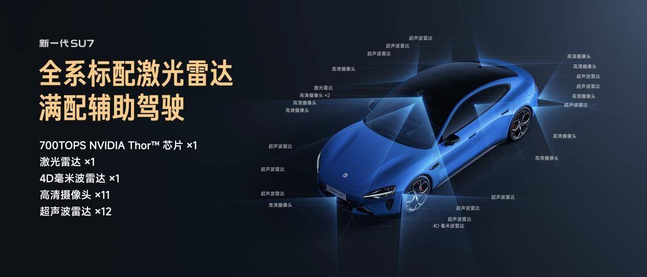 智能驾驶升级为XLA架构,采用「Xiaomi MiMo-Embodied」基座模型,新增语音控车、语音泊车及商场地库「车位级」领航功能。全系标配1个激光雷达、1个4D毫米波雷达、11个高清摄像头、12个超声波雷达,感知硬件达行业领先水平。