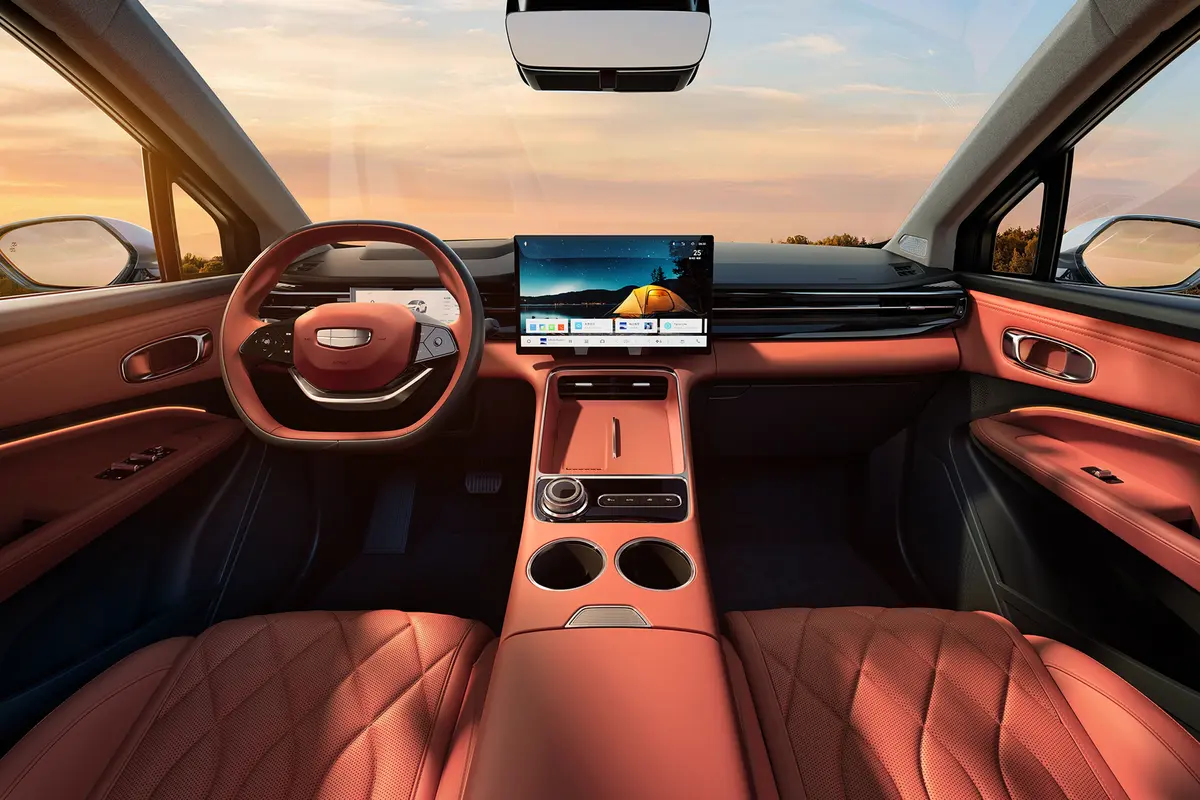 不过这也仅是外观,内饰方面博越REV则采用全新的设计语言,简约的T字型座舱搭配8.8英寸液晶仪表以及14.6英寸悬浮车机;贯穿式的熏黑饰板以及镀铬饰条有效提升了整个仪表台的层次感,中央副仪表区域也保留了功能按键,从而方便用户的日常使用。