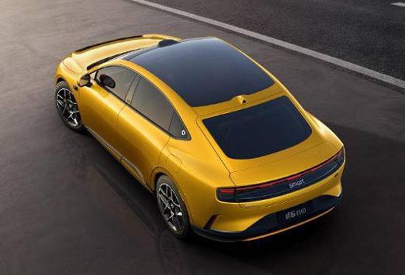 新车的外表若不悬挂smart品牌LOGO,完全看不出这是一款来自smart品牌的新车,其设计加入诸多原创设计,据称来自鲨鱼的灵感,仿生学掀背车身,整体一看即为一款新能源车型,车身尺寸为4906mm*1922mm*1508mm,轴距2926mm。车内风格沿袭smart精灵#5的风格,或配备全液晶仪表盘和双联屏的设计。