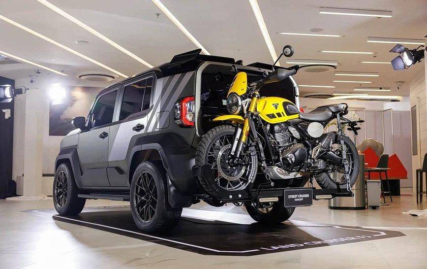 Street Cruiser版本则主打城市运动风格,车身加入专属装饰拉花,车尾加装运动化后扰流组件,配备20英寸全新运动轮毂与Brembo制动卡钳,同时换装公路性能轮胎并降低车身高度,强化公路行驶姿态。车尾原备胎位置也替换为小型储物箱体,整体更贴合城市街道驾驶场景。