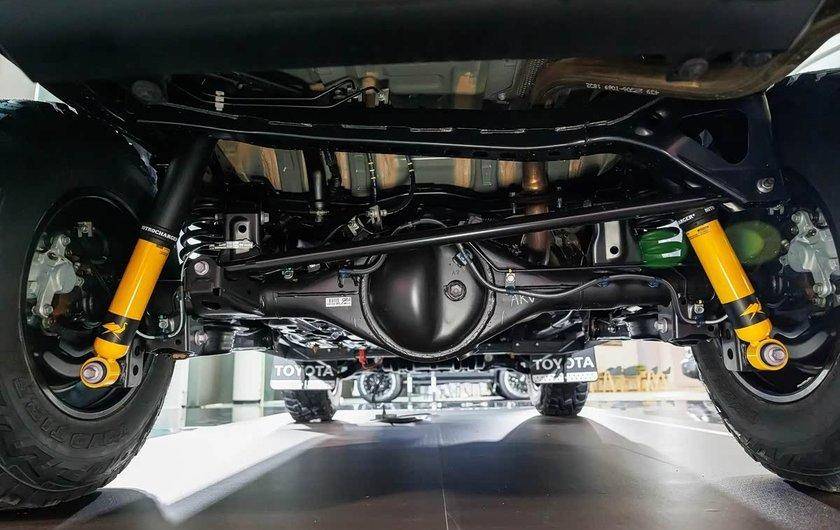 Meridian版本整体设定贴近硬核专业越野定位,车辆换装越野专用轮胎,同时加装涉水喉、底盘防护板、车顶行李架及越野射灯等实用装备,外观营造出强烈的硬核越野气场。此外,该车型针对悬挂系统与减震部件完成优化升级,在强化越野性能的基础上进一步提升实用性,能够从容应对各类复杂极端路况。