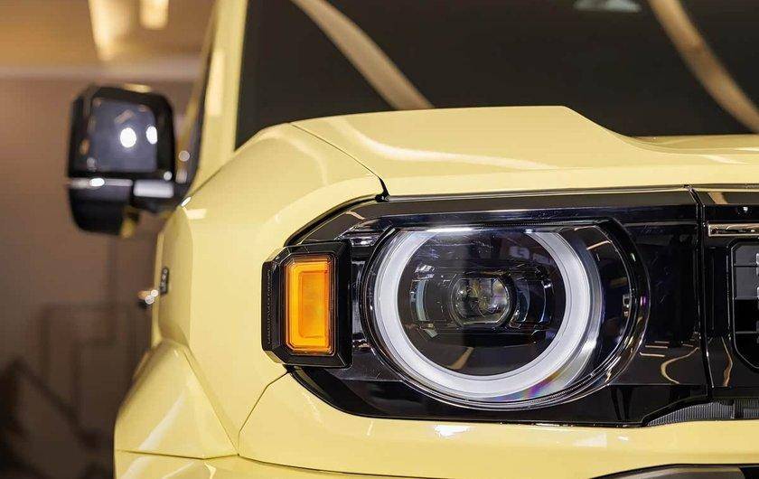 Legendary版本主打经典复古设计,设计灵感溯源至传奇车型兰德酷路泽FJ40。新车采用专属砂岩黄车漆,搭配复古圆形大灯,辅以同车身配色的保险杠与轮眉,再加上复古样式轮毂、镀铬车门把手、车身防擦条以及经典车标等细节,尽显复古情怀。