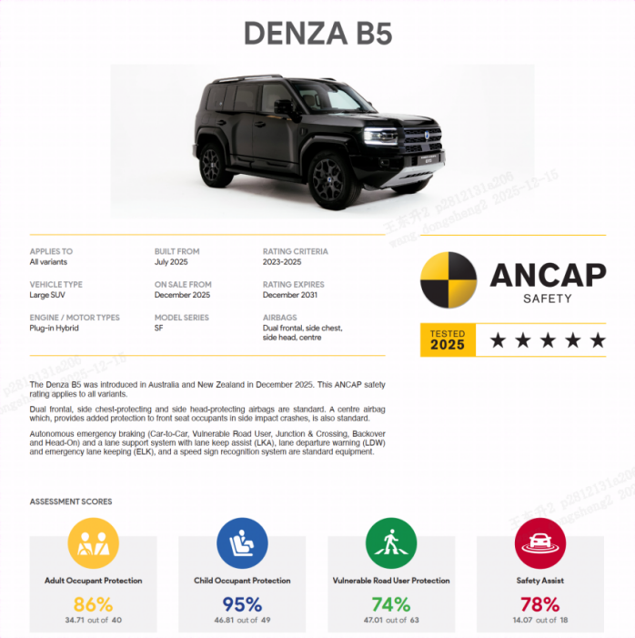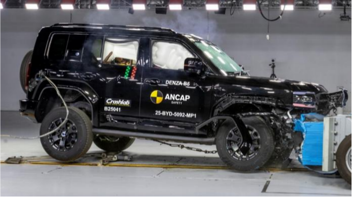 撞飞测试车被扣满8分,还能拿下全五星评价,方程豹豹5(海外命名腾势B5),在澳洲安全碰撞测试视频火了。