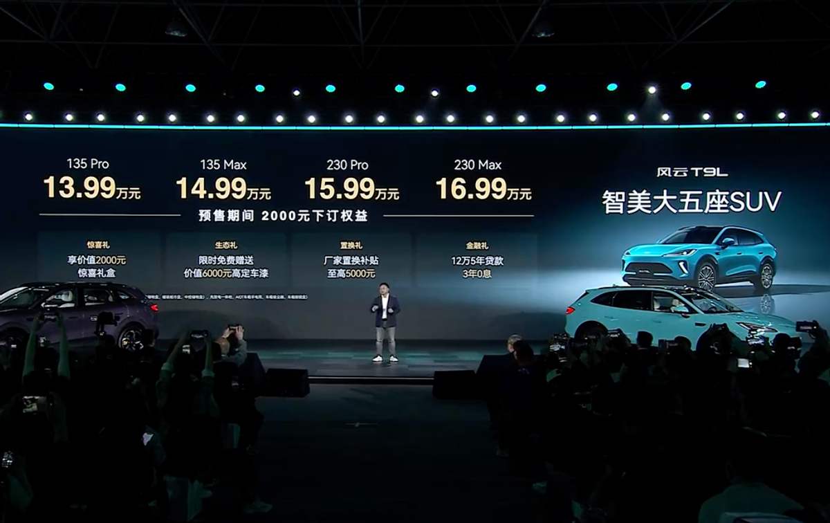 3月25日,风云T9L开启预售,价格为:13.99万元-16.99万元。