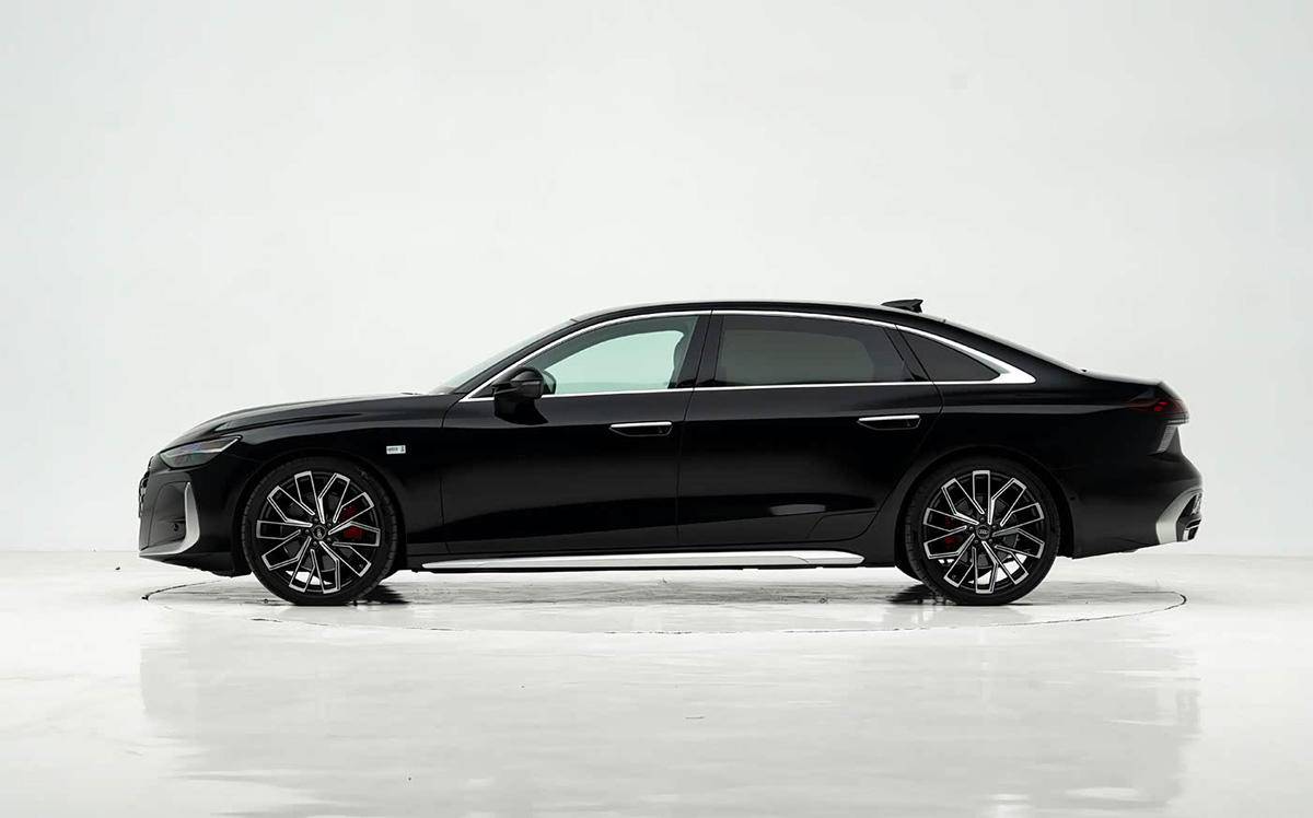 车身侧面线条相比上一代更为柔和,C柱继续使用固定式三角窗,车门把手使用了半隐藏式设计,车窗饰条会有亮黑和镀铬两种风格。车身尺寸方面,新款车型的长宽高分别为5142/1887/1464mm,轴距为3066mm,车身长度增加92mm,轴距加长42mm。