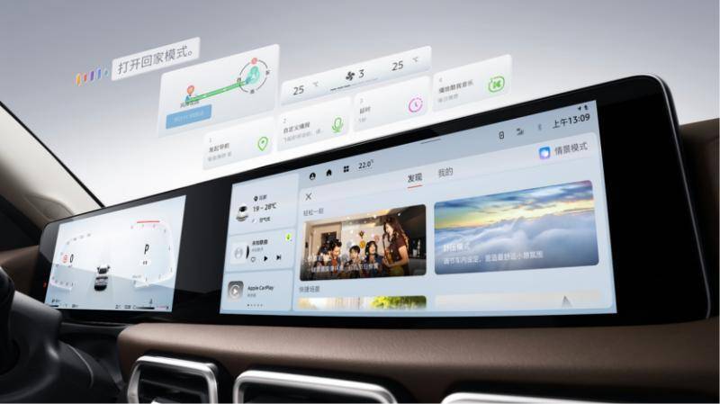 有了这颗强大的“大脑”,它带来的体验是立竿见影的。双12.3英寸一体式联屏,两块屏幕无缝连接,不仅视觉效果非常震撼,操作体验上也极其跟手,无论是滑屏、切换应用还是导航缩放,都没有丝毫卡顿。这背后是8核处理器、12GB运存、128GB存储的强悍性能在做支撑,让车机反应速度和我们的手机一样快。