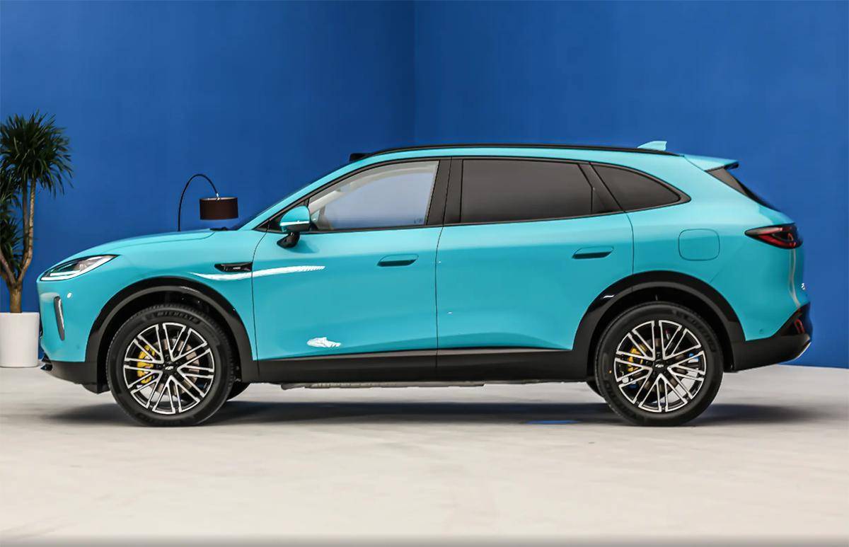 车身侧面整体造型很温润,车身腰线很柔和,车门把手为半隐藏式。车身尺寸方面,新车的长宽高分别为4870/1930/1710mm,轴距为2920mm,定位中型SUV。