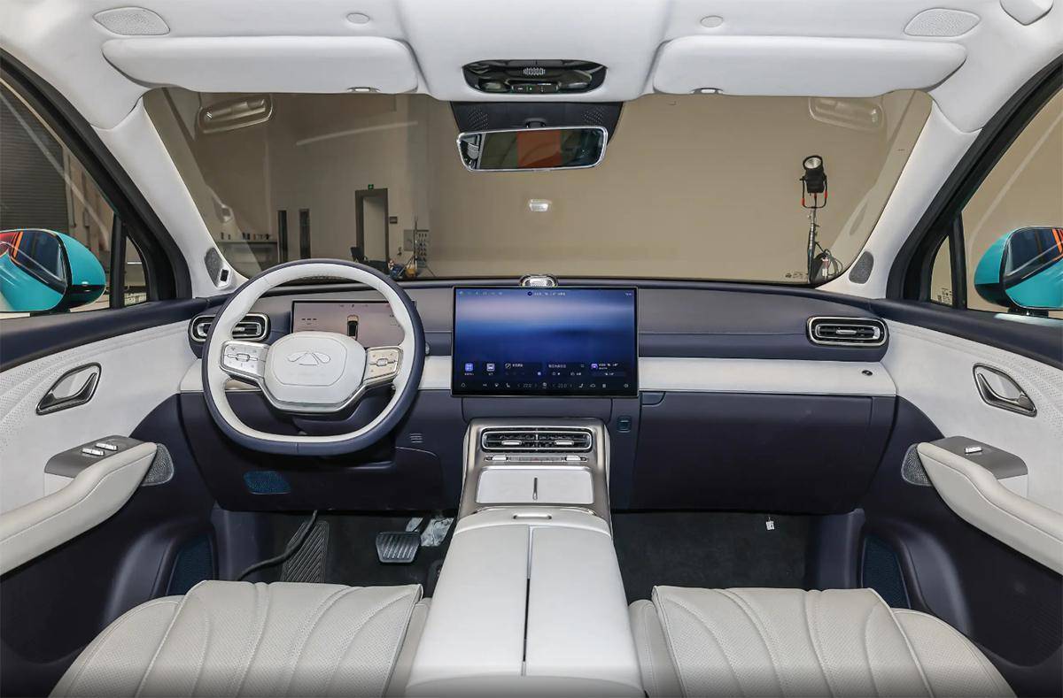 内饰部分,中控台造型简洁干练,使用了悬浮式的仪表盘和中控屏,搭载灵犀智能座舱系统,支持AI全场景智能语音等功能。