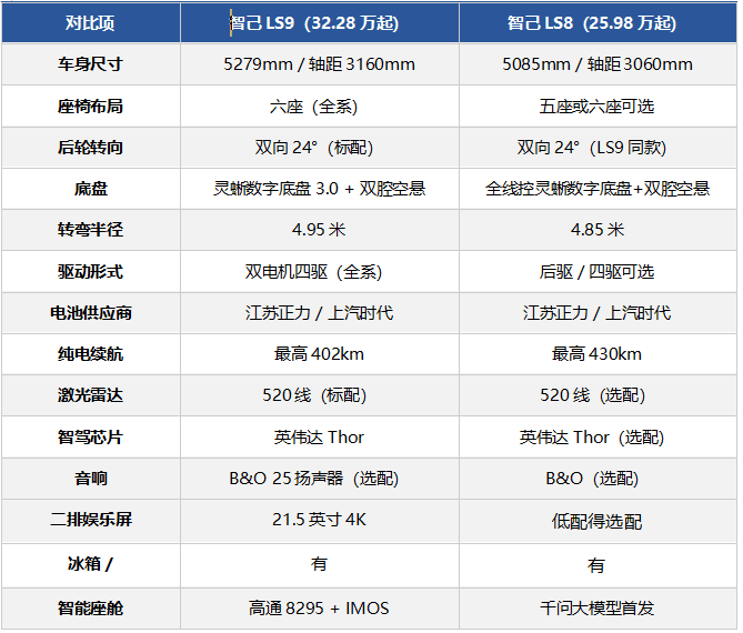 一句话总结:LS9多花的7万,买的是更大的车身(长了近20cm)、智驾标配、全系四驱,然后呢……好像没啥区别了。